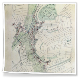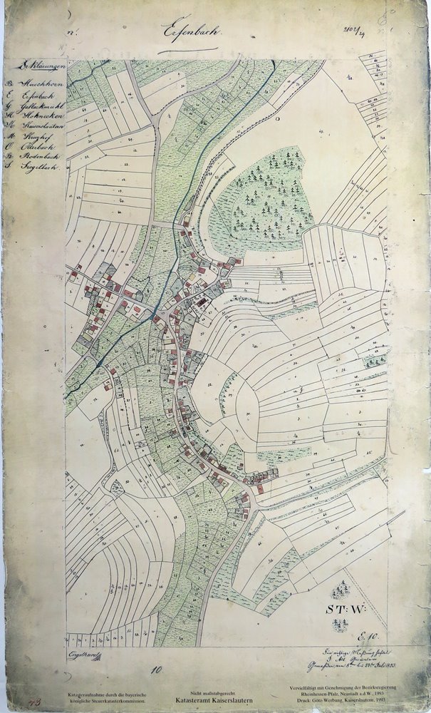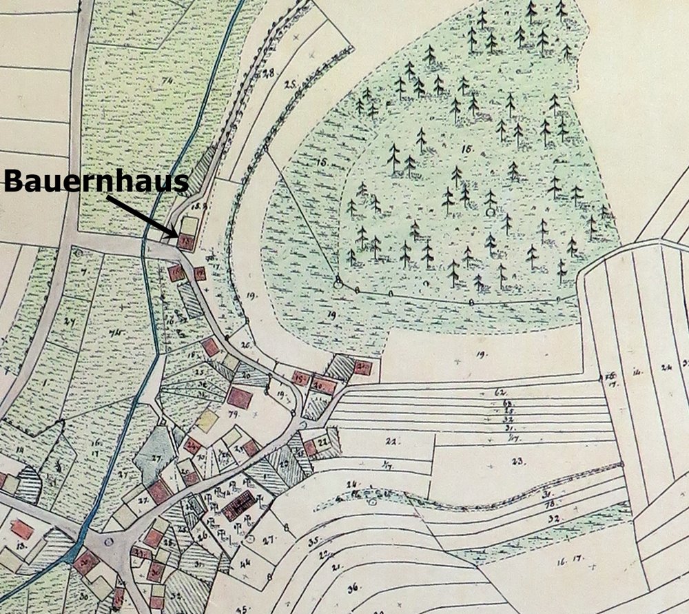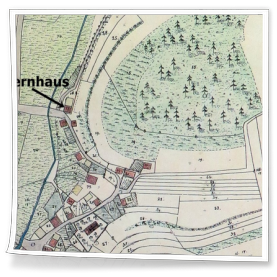 Die auf der historischen Karte erkennbare Haus-/Grundstücksnummer 15, ist auch im Heimatbuch "Erfenbach einst und jetzt" von Ludwig Mahler, in einem Protokoll zum Grundsteuerkataster des Vermessungsamtes Kaiserslautern aus dem Jahre 1836, wieder zu finden. Hier wird als Besitzer der Handelsmann Adrian Pletsch, ein angesehener Bürger und der spätere Bürgermeister von Kaiserslautern, aufgeführt, der 1833 auch das Lampertsmühler Mühlengut erwarb.